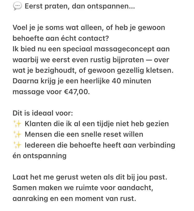 Ben je altijd beschikbaar voor massages?